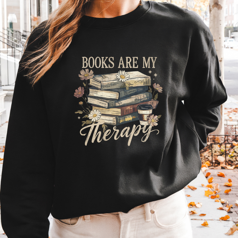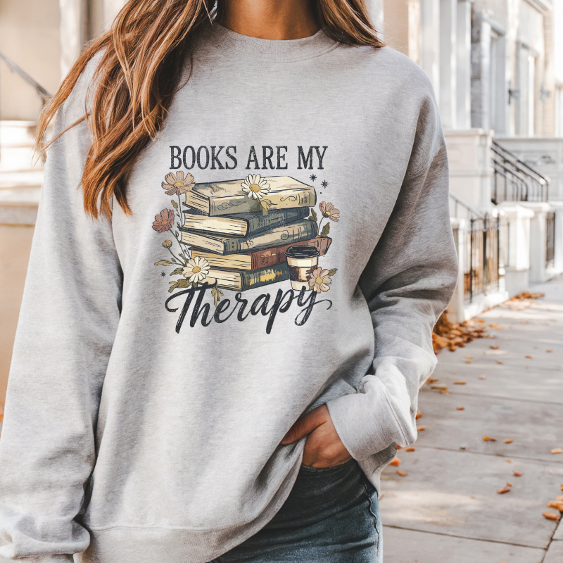Books Are My Therapy Crewneck - Available in Multiple Colors