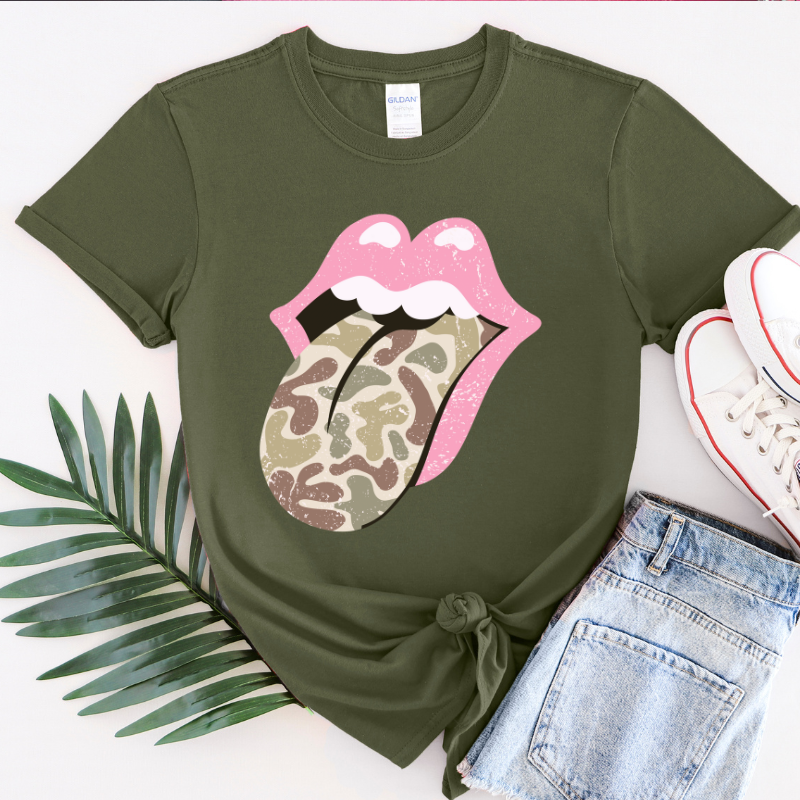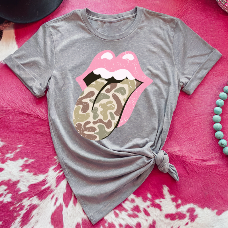 Lips with Camo T-Shirt - Available in Multiple Colors
